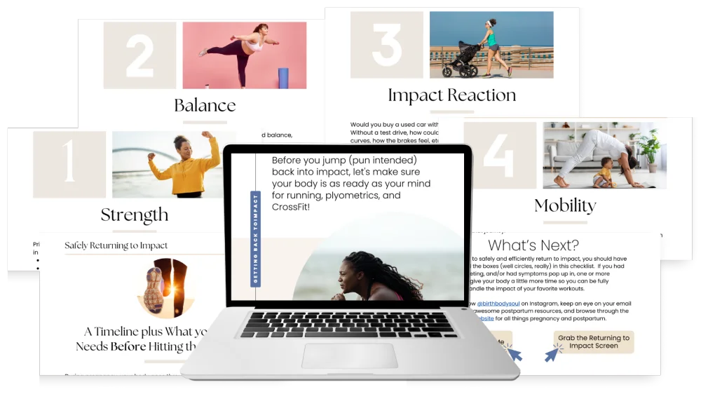 Getting Back to Impact will walk you through what your body needs to safely and effectively handle the impact of running, CrossFit, etc., after having a baby, and what 🚩”red flags”🚩 your body is sending you when she’s not quite ready.